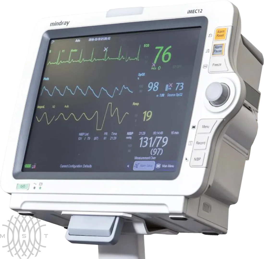 Mindray iMEC 12 — монитор пациента, предназначенный для операционных, отделений кардиологии, реанимации и палат интенсивной терапии. Он отслеживает и предоставляет информацию о жизненно важных показателях больного. Модель подходит для всех категорий пациентов: взрослых, детей, новорожденных. Прибор моментально реагирует на изменение состояния больного и информирует об этом больничный персонал.