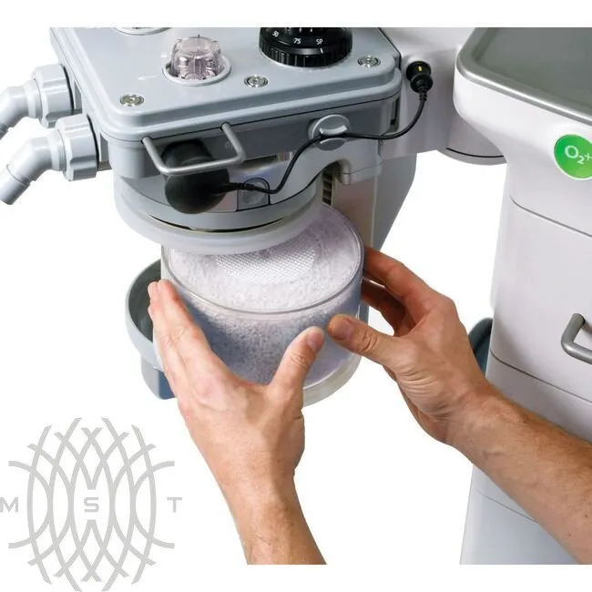 A5 поддерживает точность дыхательного объёма благодаря осуществлению компенсации растяжимости и свежего газа. Дыхательный контур оснащён подогревом, который устраняет образующийся конденсат внутри самого аппарата. Сохранность кабелей и шлангов устройства обеспечивается благодаря установленной специальной защите на колёсах и системе автоматического сматывания. Канистра абсорбера позволяет сократить объём сжимаемого пространства. Также в нём можно использовать различные виды абсорбента (упакованный или насыпной).