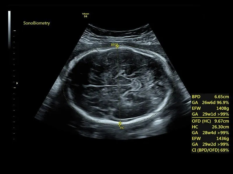- Технология автоматической фетометрии в 2D режиме — SonoBiometry для определения бипариетального размера, окружности головы, окружности живота, длины бедра и плеча плода.